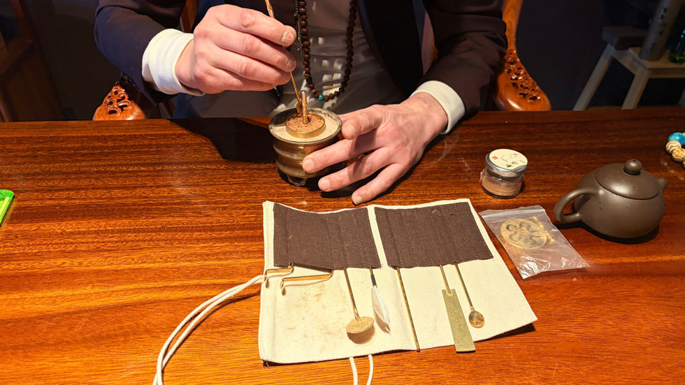 This one-hour session invites you to slow down, settle the mind, and create a beautiful moulded pattern from fine incense powder using a traditional incense mould. Rooted in Chinese incense culture, this practice is closely connected with reflection, concentration, and mindfulness. The process is gentle, precise, and calming: the more peaceful and undisturbed your mind is, the easier it becomes to stamp the incense powder successfully into the mould and reveal a clean, complete pattern.