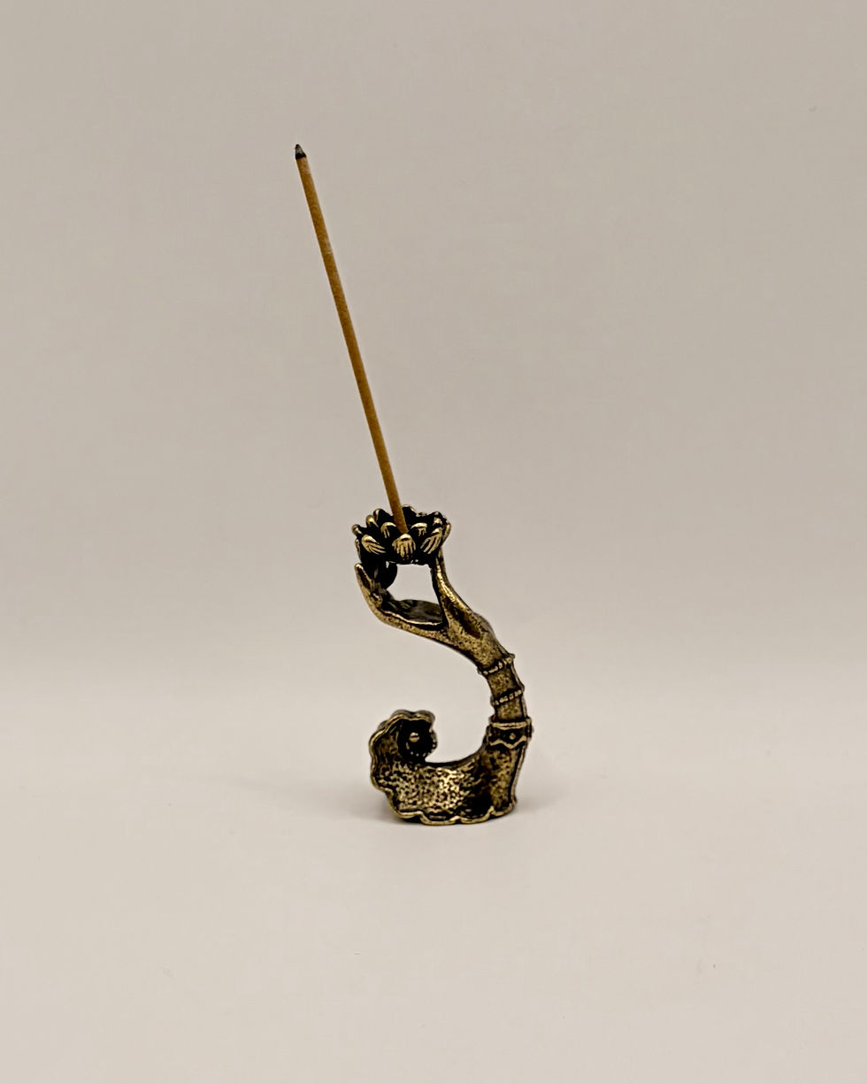 Handmade Bronze Hand Holding Lotus Flower Incense Stick Holder
