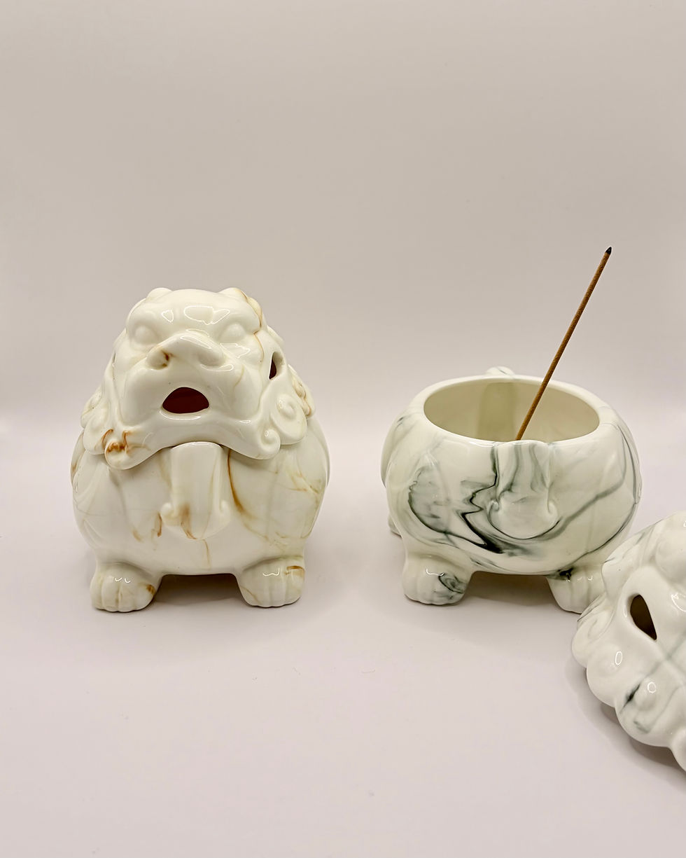 Handmade Guardian Lion Porcelain Incense Coil & Stick Burner